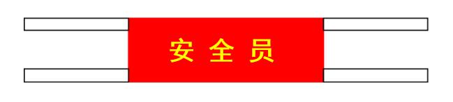 安全員的袖標(biāo)尺寸標(biāo)準(zhǔn):紅色底布,黃色字樣,寬度:10cm。如圖: