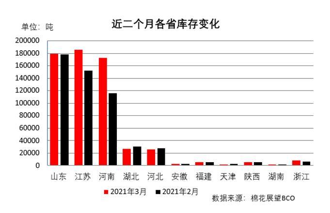 以上就是關于3月份,全國主要棉產(chǎn)地與消費地棉花周轉(zhuǎn)庫存情況。可以看出相較疫情期間,全國棉花周轉(zhuǎn)效率穩(wěn)步提升,在發(fā)運量增加的情況下,依然實現(xiàn)了周轉(zhuǎn)庫存的下降。這也意味著從2、3月份以來,國內(nèi)棉花市場已初步擺脫疫情影響,步入到增長的新常態(tài)。